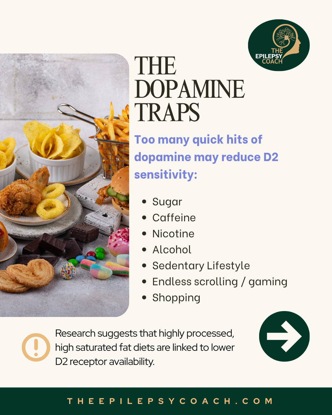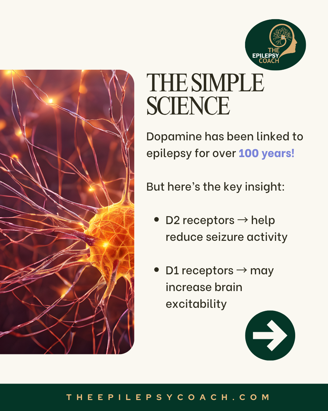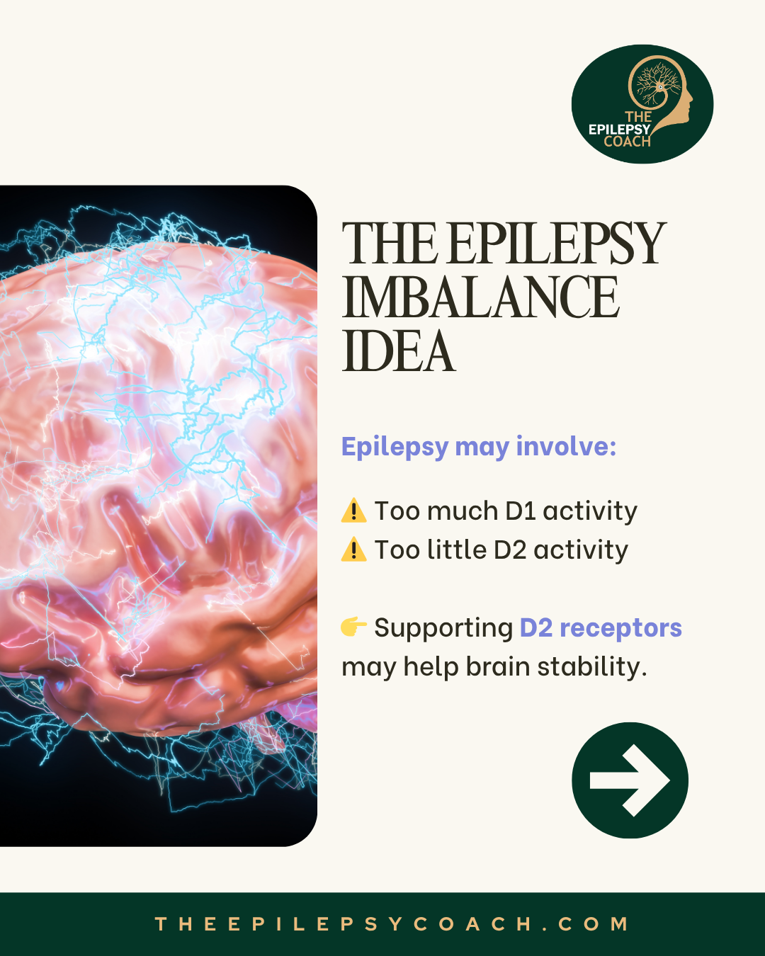 Research on epilepsy highlights the importance of dopamine receptor balance, particularly between D1 and D2 receptors. Evidence suggests that D2 receptor activity is associated with a calming effect on the brain and may help reduce seizure activity, while D1 receptor activity is linked to increased neuronal excitability. An imbalance favouring D1 may contribute to heightened seizure risk in some individuals.